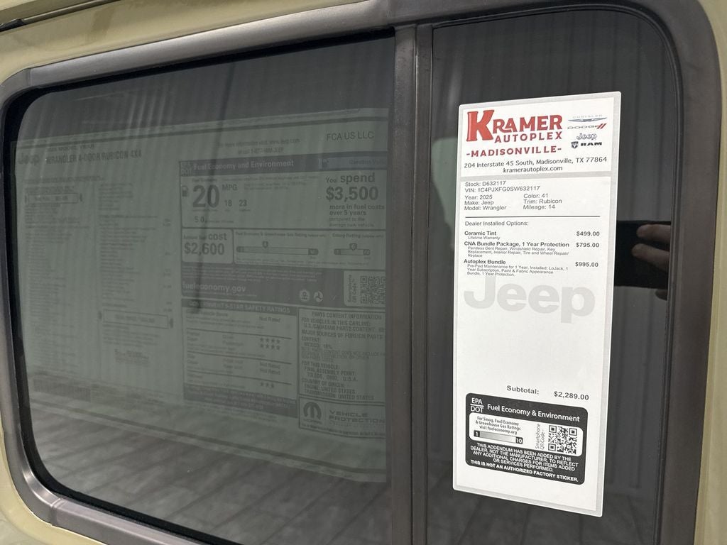 Explore adventure-ready capability with this 2025 Jeep Wrangler Rubicon, located in Madisonville, TX. Powered by a proven 3.6L V6 gasoline engine and full-time 4WD, this Rubicon delivers the torque and ground clearance needed for confident off-road performance while maintaining comfortable on-road manners. Rugged exterior styling meets a refined interior featuring premium leather seats for lasting comfort during long drives and weekend escapes. Stay connected and entertained with Android Auto and Apple CarPlay integration, providing seamless smartphone access for navigation, music, and hands-free communication. Safety-focused technology includes Forward Collision Warning to help anticipate potential hazards and enhance peace of mind on busy roads. Cold mornings are no problem thanks to a heated steering wheel that adds an extra level of comfort and convenience. This Jeep Wrangler Rubicon is equipped for trail dominance and daily practicality: heavy-duty suspension, advanced traction management, and user-friendly infotainment make it versatile for both off-road trails and city streets. Located in Madisonville, TX, this Jeep is competitively priced and offers the best value for buyers seeking capability, comfort, and modern features in a purpose-built SUV. Schedule a test drive today to experience the Rubicon's legendary performance and see why this 2025 Jeep Wrangler represents exceptional value in its class.