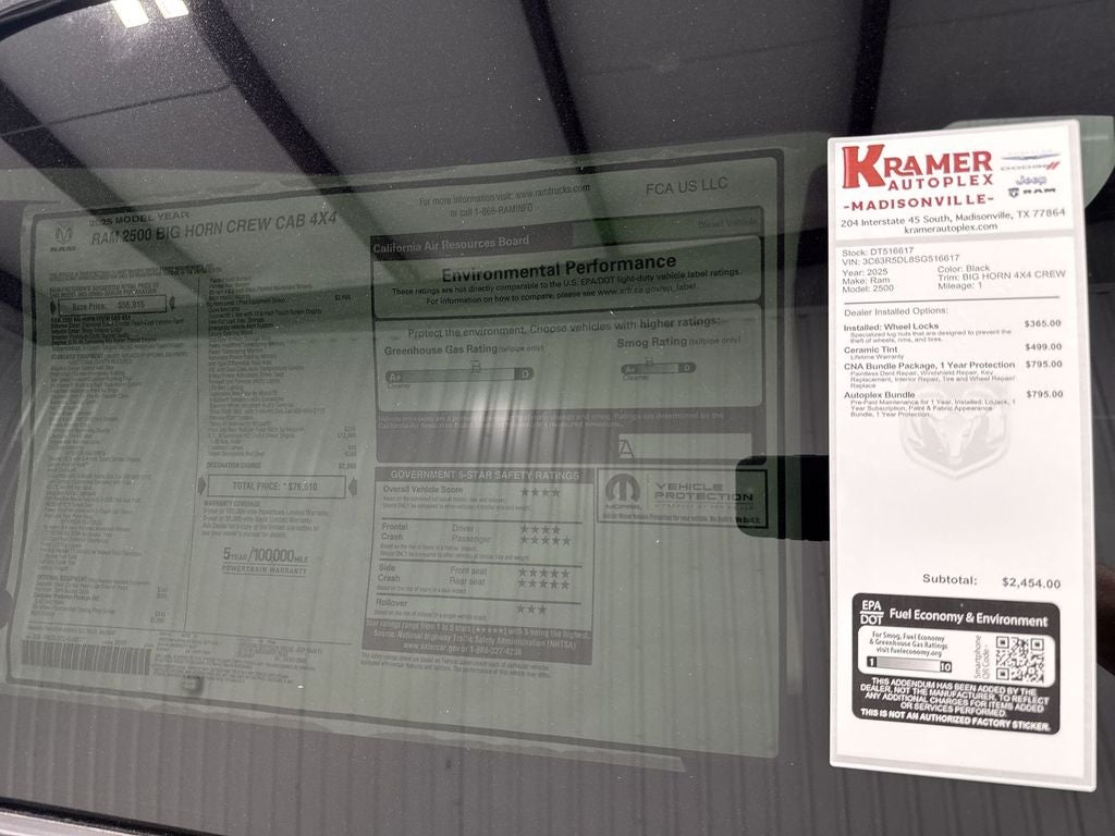 2025 Ram 2500 Big Horn 4WD — Powerful 6.7L Diesel, Best Price in Madisonville TX Take command of the road and the jobsite with this robust 2025 Ram 2500 Big Horn, featuring a torque-rich 6-cylinder 6.7L diesel and proven 4WD capability. This heavy-duty pickup blends muscle and refinement, delivering exceptional towing, impressive payload capacity, and dependable diesel performance for work or weekend adventures. Located in Madisonville TX, this Ram 2500 Big Horn is offered at the best price — exceptional value for a premium, well-equipped truck. Comfort and convenience are prioritized with Automatic Climate Control that keeps the cabin balanced no matter the season, and an intuitive Navigation system that guides you confidently to every destination. Seamless smartphone integration is provided via Android Auto for effortless music, contacts, and messaging on the go. Safety and convenience features include Rear Parking Sensors and a Back-Up Camera to simplify parking and hitching in tight spots. This Ram 2500 Big Horn comes with a commanding exterior stance and a thoughtfully appointed interior designed for long days and long drives. Whether you need a reliable workhorse for towing heavy loads or a comfortable, tech-ready truck for daily driving, this 2025 Ram 2500 Big Horn offers a compelling combination of performance, capability, and modern features. Stop by Madisonville TX to see it for yourself — available now at the best price.