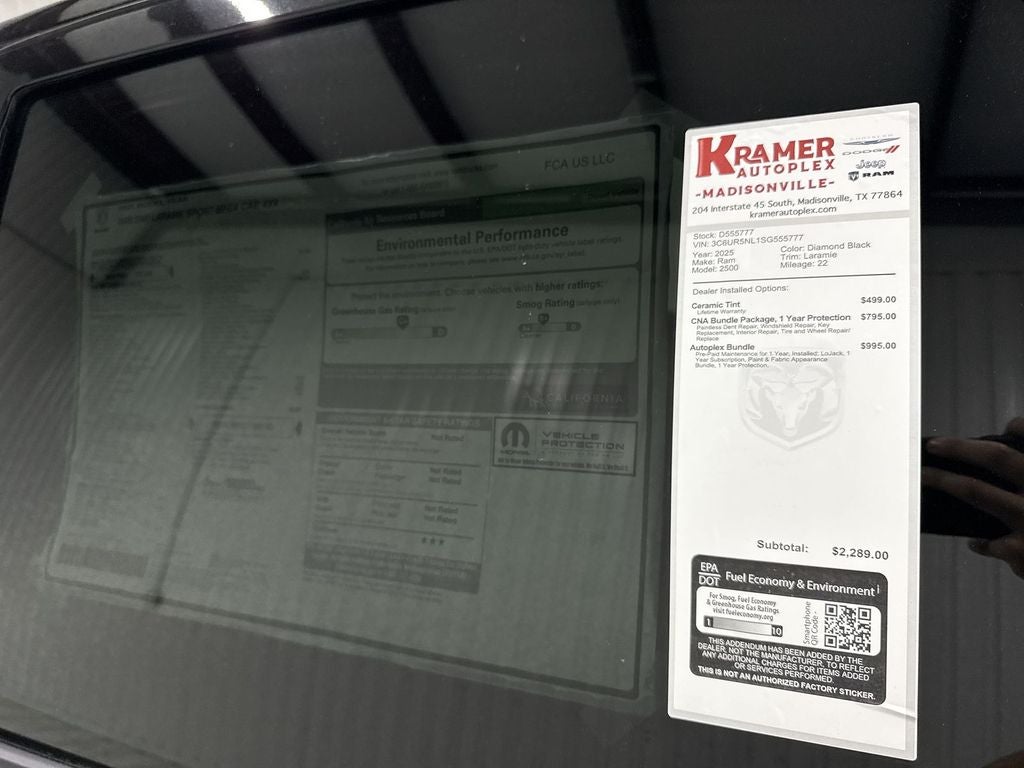 2025 Ram 2500 Laramie 4WD with the proven 6.7L inline-6 Cummins diesel — built for heavy-duty work and refined daily driving. This Laramie blends premium comfort with commercial-grade capability, offering robust towing and payload numbers while delivering smooth, efficient diesel performance. The upscale cabin features leather-appointed seating, advanced infotainment, and thoughtful driver aids designed for long hauls or weekend projects. Convenience and connectivity are covered with Remote Start, Hands-Free Bluetooth®, Android Auto, and factory Navigation, keeping you connected and on course whether you're commuting or heading off-grid. Safety and confidence come standard with a Back-Up Camera for precise maneuvering and enhanced visibility in tight spots. Rugged 4WD capability ensures traction and control across varied terrain and weather conditions, making this Ram 2500 versatile for rural work sites and city streets alike. This Ram 2500 Laramie is located in Madisonville, TX, and is priced competitively to offer the best value in the area. If you're seeking a heavy-duty truck that balances luxury features with diesel durability, this model delivers. Contact us to schedule a test drive and experience the capability, comfort, and advanced technology of the 2025 Ram 2500 Laramie — the best-priced option in Madisonville for drivers who demand strength and sophistication.