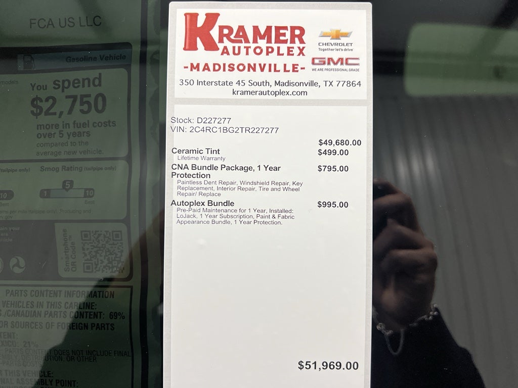 S Appearance Package: Black Day Light Opening Moldings; Caprice Leatherette with S Logo; Piano Black Interior Accents; Premium Fascia Upper/lower Grille with Black Surround; 245/50R20 BSW AS Self-Sealing Tires; Black Stow 'N Place Roof Rack; Premium Rear Fascia Black; 20" X 7.5" S-Model Aluminum Wheels Design 1; Anodized Ink Badging; S Badge. Safety Sphere: 360 Surround View Camera System; ParkSense Front/rear Park Assist with Stop. Quick Order Package 27L. **Equipment listed is based on original vehicle build and subject to change. Please confirm the accuracy of the included equipment by calling the dealer prior to purchase.**