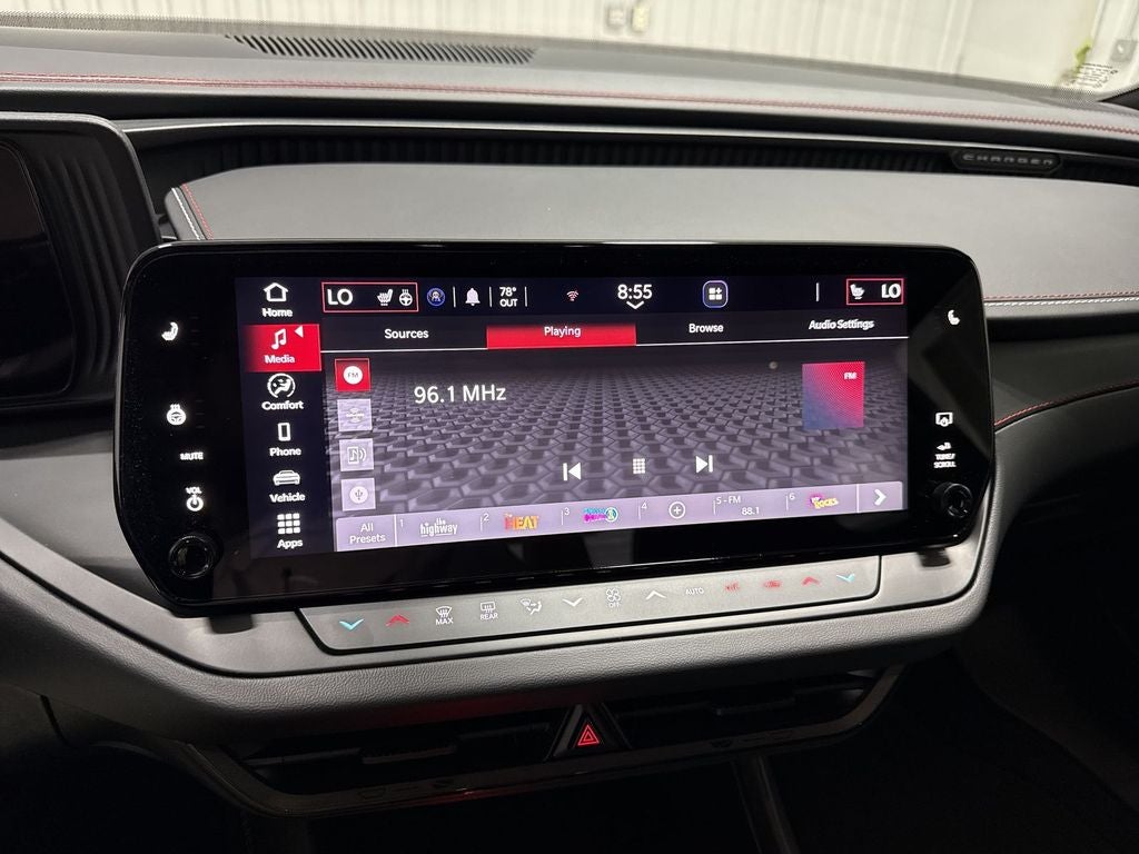 This large car features a hands-free Bluetooth® phone system. The Dodge Charger comes equipped with Android Auto for seamless smartphone integration on the road. Never get into a cold vehicle again with the remote start feature on this vehicle. See what's behind you with the back up camera on it. The leather seats in this Dodge Charger are a must for buyers looking for comfort, durability, and style. The vehicle keeps you comfortable with Auto Climate. The Dodge Charger's Forward Collision Warning system alerts the driver to potential front-end collisions, enhancing safety. This model is pure luxury with a heated steering wheel. Apple CarPlay: Seamless smartphone integration for this 2026 Dodge Charger - stay connected and entertained on the go! The rear parking assist technology on this unit will put you at ease when reversing. The system alerts you as you get closer to an obstruction. This 2026 Dodge Charger has auto-adjust speed for safe following.