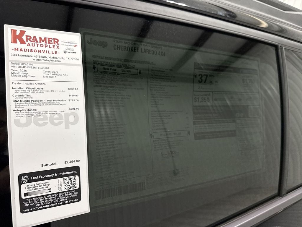 Discover exceptional value with this 2026 Jeep Cherokee Laredo 4WD, now available in Madisonville, TX. Powered by a fuel-efficient 4-cylinder 1.6L Full Hybrid Electric (FHEV) powertrain, this Jeep Cherokee delivers confident performance, excellent fuel economy, and responsive handling whether cruising city streets or exploring backroads. The spacious interior and modern design make every drive comfortable and practical for families and commuters alike. Packed with advanced tech and safety features, this Jeep Cherokee Laredo includes Android Auto for seamless smartphone integration, an adaptive cruise control system for relaxed highway driving, and forward collision warning to help protect you and your passengers. Maneuvering and parking are simplified with a crisp back-up camera, while remote start adds convenience on hot Texas days. The 4WD capability provides traction and control across varying road conditions, giving you peace of mind year-round. This vehicle is competitively priced and listed as the best price in the area, offering outstanding value for buyers seeking a reliable hybrid SUV with modern amenities. Located in Madisonville, TX, this Jeep Cherokee Laredo is ready for a test drive—don't miss your chance to own a versatile, efficient SUV with top-tier technology and safety features. Contact us to schedule a viewing and experience the performance and efficiency of this hybrid Jeep Cherokee for yourself.