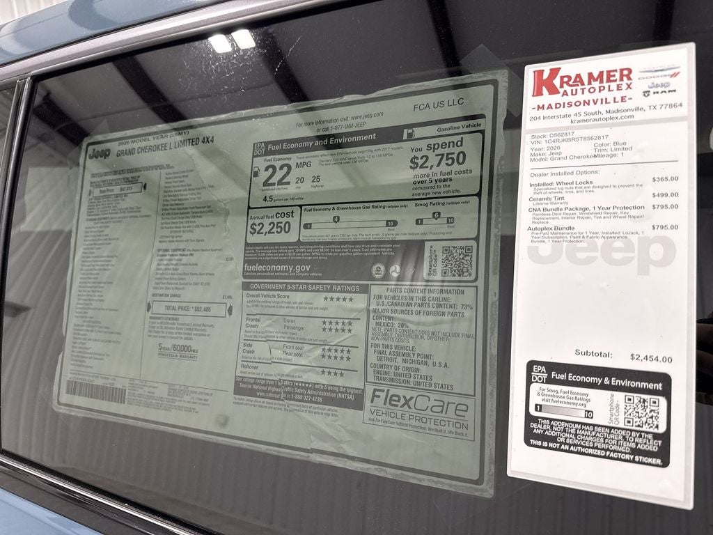 2026 Jeep Grand Cherokee L Limited 4WD — Best Price in Madisonville, TX Discover the refined capability of this 2026 Jeep Grand Cherokee L Limited with 4WD and a fuel-efficient 2.0L 4-cylinder gasoline engine. Perfect for Texas roads and weekend adventures, this three-row SUV delivers a smooth ride, confident handling, and advanced safety tech to keep you and your family secure. Key features include Remote Start for comfort on hot or cool mornings, Adaptive Cruise Control for relaxed highway driving, and Forward Collision Warning to help prevent accidents. The Back-Up Camera simplifies parking and reversing, while Hands-Free Bluetooth® keeps you connected without distraction. The Limited trim adds premium touches and comfort-focused amenities that elevate daily driving. Located in Madisonville, TX, this Jeep Grand Cherokee L Limited is competitively priced and represents the best price available in the area for a 2026 model with these features. Whether you need space for passengers, cargo flexibility, or capable four-wheel drive performance, this Jeep checks the boxes. Schedule a test drive in Madisonville today and experience the blend of capability, safety, and modern convenience this Jeep Grand Cherokee L Limited offers. Don't miss your chance to secure a top-value 2026 SUV right here in Madisonville, TX.