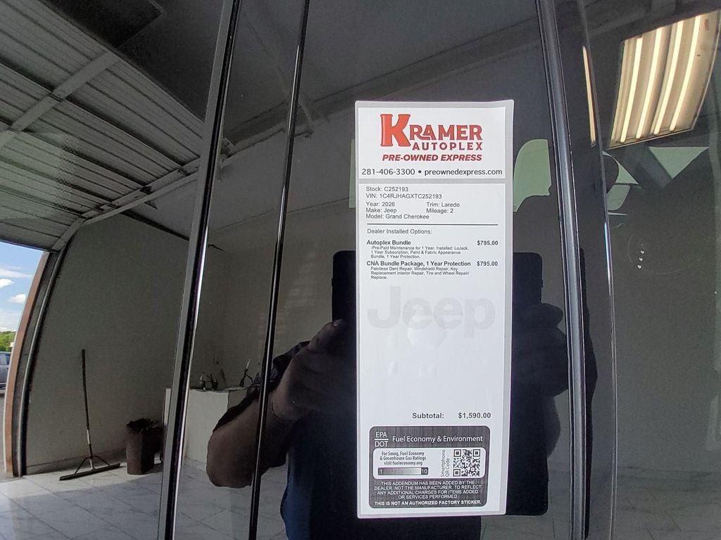 See what's behind you with the back up camera on this model. This vehicle has auto-adjust speed for safe following. This Jeep Grand Cherokee offers Automatic Climate Control for personalized comfort. It's Forward Collision Warning feature alerts drivers to potential front-end collisions. Bluetooth® technology is built into this Jeep Grand Cherokee, keeping your hands on the steering wheel and your focus on the road. This unit is pure luxury with a heated steering wheel. This vehicle offers Apple CarPlay for seamless connectivity. Never get into a cold vehicle again with the remote start feature on this 2026 Jeep Grand Cherokee . This mid-size suv offers Android Auto for seamless smartphone integration. Enjoy the convenience of the power liftgate on this unit. This unit has an elegant black exterior finish. This 2026 Jeep Grand Cherokee has a V6, 3.6L high output engine. When you encounter slick or muddy roads, you can engage the four wheel drive on the vehicle and drive with confidence.