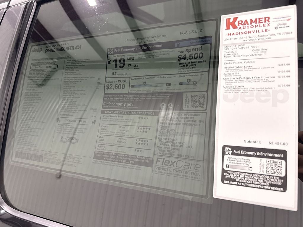 The leather seats in it are a must for buyers looking for comfort, durability, and style. Keep your hands warm all winter with a heated steering wheel in this 1/2 ton suv . You'll never again be lost in a crowded city or a country region with the navigation system on this vehicle. Never get into a cold vehicle again with the remote start feature on this 2026 Jeep Grand Wagoneer . Bluetooth® technology is built into this Jeep Grand Wagoneer, keeping your hands on the steering wheel and your focus on the road. See what's behind you with the back up camera on this 2026 Jeep Grand Wagoneer . This vehicle's Forward Collision Warning feature alerts drivers to potential front-end collisions. Apple CarPlay: Seamless smartphone integration for the vehicle - stay connected and entertained on the go! This Jeep Grand Wagoneer offers Android Auto for seamless smartphone integration. This vehicle has automated speed control that adjusts to maintain a safe following distance, enhancing highway driving convenience.