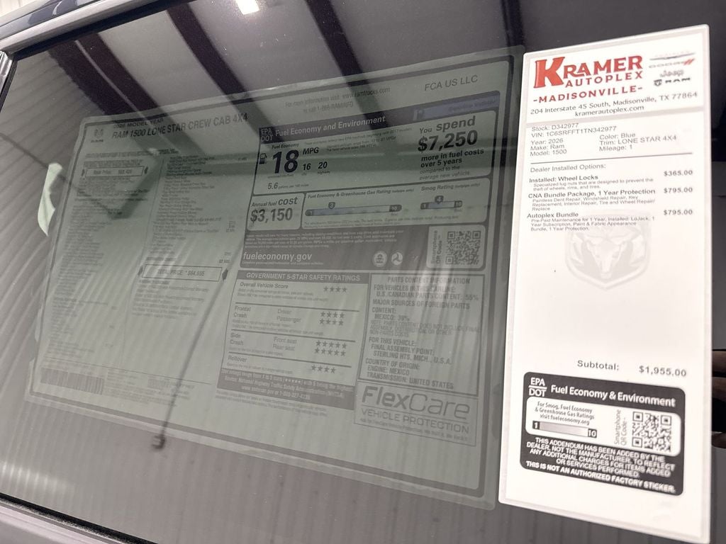 2026 Ram 1500 Lone Star 4WD with the 5.7L V8 offers capability, comfort, and modern technology for drivers in Madisonville, TX. This well-equipped Ram pairs a powerful gasoline V8 with four-wheel drive to tackle towing, hauling, and Texas back roads with confidence. The Lone Star trim delivers a refined interior featuring user-friendly connectivity: Apple CarPlay, Android Auto, and Hands-Free Bluetooth® keep your devices integrated for music, navigation, and calls. Remote Start adds convenience for hot summers or cool mornings, while Forward Collision Warning provides an extra layer of safety for daily commutes and long-distance travel. Thoughtful storage, supportive seating, and durable materials make the cabin both practical and comfortable, ideal for work crews or family adventures. Exterior styling balances rugged capability with modern presence, and the 5.7L V8 supplies the torque and power Ram owners expect. This vehicle is competitively priced in Madisonville, TX, and is offered at the best price in the area—an exceptional value for buyers seeking performance and features without compromise. Whether you need a dependable truck for towing, a tech-forward ride for everyday use, or a versatile vehicle for weekend projects, the 2026 Ram 1500 Lone Star 4WD with V8 is ready. Schedule a test drive today in Madisonville, TX, and experience the combination of power, safety, and connectivity firsthand.