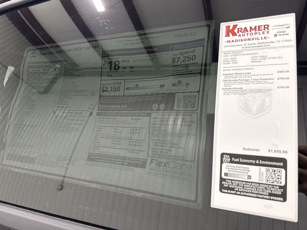 Discover the 2026 Ram 1500 Lone Star 4WD with the powerful 5.7L V8 gasoline engine, now available in Madisonville, TX. This rugged, capable pickup combines classic Ram strength with modern convenience and advanced safety technology, making it an ideal choice for work, towing, and everyday driving. The Lone Star trim brings purposeful styling and a comfortable, functional interior tailored for long drives and demanding jobs. This Ram 1500 is equipped with Forward Collision Warning and Adaptive Cruise Control to help maintain safe distances on the highway, plus a Back-Up Camera for easier maneuvering and parking. Seamless smartphone integration is provided through Apple CarPlay and Android Auto, keeping navigation, music, and communications accessible and hands-free. The 4WD system and robust 5.7L V8 deliver confident performance across varied terrain and weather conditions, providing the towing capacity and torque you expect from a full-size truck. Located in Madisonville, TX, this 2026 Ram 1500 Lone Star is priced to sell and represents the best price available in the area. Whether you need a dependable work truck or a comfortable weekend cruiser, this Ram 1500 delivers value, capability, and peace of mind. Contact us today to schedule a test drive and experience the performance and features of this exceptional pickup.