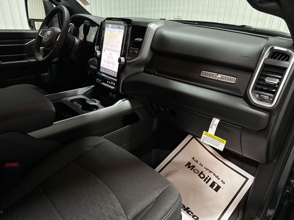 Quick Order Package 24Y Lone Star: Lone Star Badge. Night Edition: Firestone Brand Tires; Gloss Black Nostrils/mic Black Grille; LT285/60R20E OWL On/off Road Tires; Black Exterior Truck Badging; 20" X 8.0" Black Painted Aluminum Wheels; Body Color Grille-Surround; Black Interior Accents; Black Wheel Center Hub; Painted Front Bumper; Painted Rear Bumper. Off Road Package: Front Performance Tuned Shock Absorbers; Transfer Case Skid Plate Shield; Hill Assist; Rear Performance Tuned Shock Absorbers. Big Horn Level 1 Plus Equipment Group: Google Android Auto; SiriusXM Radio Service; For Details. Visit DriveUconnect.com; For More Info. Call 800-643-2112; Integrated Voice Command with Bluetooth®; Emergency Vehicle Alert System (EVAS); Lone Star Instrument Panel Badge; 12" Touchscreen Display; Glove Box Lamp; Auto Power-Folding Mirrors; Footwell Courtesy Lamp; Anti-Spin Differential Rear Axle; Mirror Running Lights; MOPAR Deployable Bed Step; Alexa Built-In; Apple CarPlay; Power-Adjustable Convex Aux Mirrors; Forward and Reverse Utility Lights; Locking Lower Glove Box; Remote Start System; 9 Alpine Speakers with Subwoofer; Disassociated Touchscreen Display; Dual Glove Boxes; 2nd Row in Floor Storage Bins; Rear View Auto Dim Mirror; Rear Dome with On/off Switch Lamp; LED Bed Lighting; Connectivity - US/Canada; GPS Navigation; 4G LTE Wi-Fi Hot Spot; GPS Antenna Input; Exterior Mirrors with Heating Element; SiriusXM with 360L; Global Telematics Box Module; Connected Travel and Traffic Services; Foam Bottle Insert (door Trim Panel); Black Exterior Mirrors; Off-Road Info Pages; Selectable Tire Fill Alert; Trailer Tow Pages; HD Radio; Uconnect 5 Navigation with 12.0" Display Radio; Power Heated Folding Telescopic Mirrors; Exterior Mirrors with Supplemental Signals; Steering Wheel Mounted Audio Controls; Exterior Mirrors Courtesy Lamps; Air Conditioning ATC with Dual Zone Control; MOPAR Spray in Bedliner; Power Adjust Mirrors; Luxury Steering Wheel; Power Telescoping Mirrors. Heated Seats and Wheel Group: Heated Front Seats; Heated Steering Wheel. Quick Order Package 2UY Lone Star: Lone Star Badge. Painted Flat Wheel-To-wheel Side Steps. 5th Wheel/gooseneck Towing Prep Group. Anti-Spin Differential Rear Axle. Premium Cloth Bucket Seats. Remote Start System. Forged Blue Metallic. MOPAR Front and Rear Rubber Floor Mats. Clearance Lamps. Power 2-Way Driver Lumbar Adjust. Transfer Case Skid Plate Shield. **Equipment listed is based on original vehicle build and subject to change. Please confirm the accuracy of the included equipment by calling the dealer prior to purchase.**