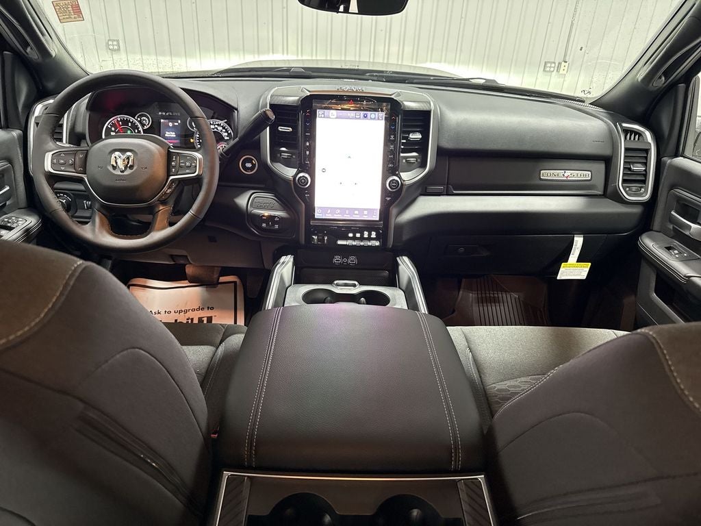 Quick Order Package 24Y Lone Star: Lone Star Badge. Night Edition: Firestone Brand Tires; Gloss Black Nostrils/mic Black Grille; LT285/60R20E OWL On/off Road Tires; Black Exterior Truck Badging; 20" X 8.0" Black Painted Aluminum Wheels; Body Color Grille-Surround; Black Interior Accents; Black Wheel Center Hub; Painted Front Bumper; Painted Rear Bumper. Off Road Package: Front Performance Tuned Shock Absorbers; Transfer Case Skid Plate Shield; Hill Assist; Rear Performance Tuned Shock Absorbers. Big Horn Level 1 Plus Equipment Group: Google Android Auto; SiriusXM Radio Service; For Details. Visit DriveUconnect.com; For More Info. Call 800-643-2112; Integrated Voice Command with Bluetooth®; Emergency Vehicle Alert System (EVAS); Lone Star Instrument Panel Badge; 12" Touchscreen Display; Glove Box Lamp; Auto Power-Folding Mirrors; Footwell Courtesy Lamp; Anti-Spin Differential Rear Axle; Mirror Running Lights; MOPAR Deployable Bed Step; Alexa Built-In; Apple CarPlay; Power-Adjustable Convex Aux Mirrors; Forward and Reverse Utility Lights; Locking Lower Glove Box; Remote Start System; 9 Alpine Speakers with Subwoofer; Disassociated Touchscreen Display; Dual Glove Boxes; 2nd Row in Floor Storage Bins; Rear View Auto Dim Mirror; Rear Dome with On/off Switch Lamp; LED Bed Lighting; Connectivity - US/Canada; GPS Navigation; 4G LTE Wi-Fi Hot Spot; GPS Antenna Input; Exterior Mirrors with Heating Element; SiriusXM with 360L; Global Telematics Box Module; Connected Travel and Traffic Services; Foam Bottle Insert (door Trim Panel); Black Exterior Mirrors; Off-Road Info Pages; Selectable Tire Fill Alert; Trailer Tow Pages; HD Radio; Uconnect 5 Navigation with 12.0" Display Radio; Power Heated Folding Telescopic Mirrors; Exterior Mirrors with Supplemental Signals; Steering Wheel Mounted Audio Controls; Exterior Mirrors Courtesy Lamps; Air Conditioning ATC with Dual Zone Control; MOPAR Spray in Bedliner; Power Adjust Mirrors; Luxury Steering Wheel; Power Telescoping Mirrors. Heated Seats and Wheel Group: Heated Front Seats; Heated Steering Wheel. Quick Order Package 2UY Lone Star: Lone Star Badge. Painted Flat Wheel-To-wheel Side Steps. 5th Wheel/gooseneck Towing Prep Group. Anti-Spin Differential Rear Axle. Premium Cloth Bucket Seats. Remote Start System. MOPAR Front and Rear Rubber Floor Mats. Clearance Lamps. Power 2-Way Driver Lumbar Adjust. Transfer Case Skid Plate Shield. **Equipment listed is based on original vehicle build and subject to change. Please confirm the accuracy of the included equipment by calling the dealer prior to purchase.**