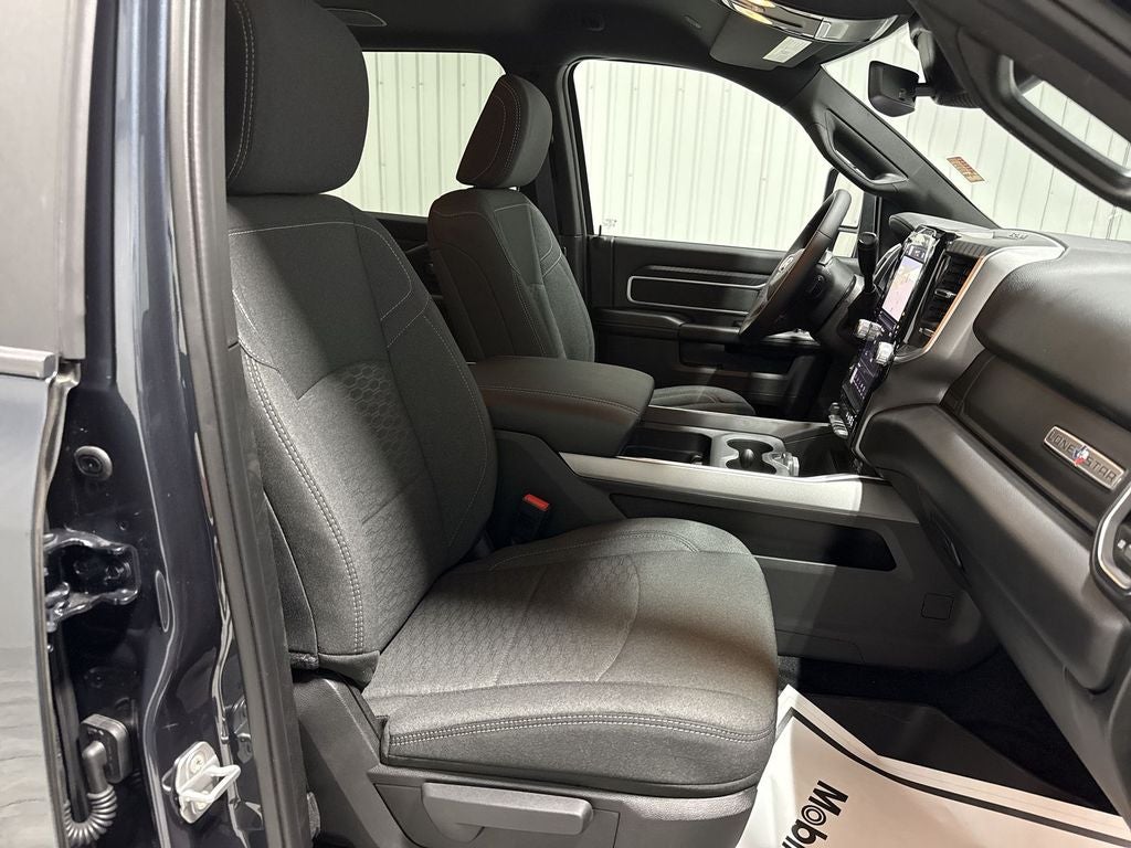 Quick Order Package 2UY Lone Star: Lone Star Badge. Night Edition: Firestone Brand Tires; Gloss Black Nostrils/mic Black Grille; LT285/60R20E OWL On/off Road Tires; Black Exterior Truck Badging; 20" X 8.0" Black Painted Aluminum Wheels; Body Color Grille-Surround; Black Interior Accents; Black Wheel Center Hub; Painted Front Bumper; Painted Rear Bumper. Off Road Package: Front Performance Tuned Shock Absorbers; Transfer Case Skid Plate Shield; Hill Assist; Rear Performance Tuned Shock Absorbers. Big Horn Level 1 Plus Equipment Group: Google Android Auto; SiriusXM Radio Service; For Details. Visit DriveUconnect.com; For More Info. Call 800-643-2112; Integrated Voice Command with Bluetooth®; Emergency Vehicle Alert System (EVAS); Lone Star Instrument Panel Badge; 12" Touchscreen Display; Glove Box Lamp; Auto Power-Folding Mirrors; Footwell Courtesy Lamp; Anti-Spin Differential Rear Axle; Mirror Running Lights; MOPAR Deployable Bed Step; Alexa Built-In; Apple CarPlay; Power-Adjustable Convex Aux Mirrors; Forward and Reverse Utility Lights; Locking Lower Glove Box; Remote Start System; 9 Alpine Speakers with Subwoofer; Disassociated Touchscreen Display; Dual Glove Boxes; 2nd Row in Floor Storage Bins; Rear View Auto Dim Mirror; Rear Dome with On/off Switch Lamp; LED Bed Lighting; Connectivity - US/Canada; GPS Navigation; 4G LTE Wi-Fi Hot Spot; GPS Antenna Input; Exterior Mirrors with Heating Element; SiriusXM with 360L; Global Telematics Box Module; Connected Travel and Traffic Services; Foam Bottle Insert (door Trim Panel); Black Exterior Mirrors; Off-Road Info Pages; Selectable Tire Fill Alert; Trailer Tow Pages; HD Radio; Uconnect 5 Navigation with 12.0" Display Radio; Power Heated Folding Telescopic Mirrors; Exterior Mirrors with Supplemental Signals; Steering Wheel Mounted Audio Controls; Exterior Mirrors Courtesy Lamps; Air Conditioning ATC with Dual Zone Control; MOPAR Spray in Bedliner; Power Adjust Mirrors; Luxury Steering Wheel; Power Telescoping Mirrors. Heated Seats and Wheel Group: Heated Front Seats; Heated Steering Wheel. Painted Flat Wheel-To-wheel Side Steps. 5th Wheel/gooseneck Towing Prep Group. Anti-Spin Differential Rear Axle. Premium Cloth Bucket Seats. Remote Start System. Forged Blue Metallic. MOPAR Front and Rear Rubber Floor Mats. Clearance Lamps. Power 2-Way Driver Lumbar Adjust. Transfer Case Skid Plate Shield. **Equipment listed is based on original vehicle build and subject to change. Please confirm the accuracy of the included equipment by calling the dealer prior to purchase.**