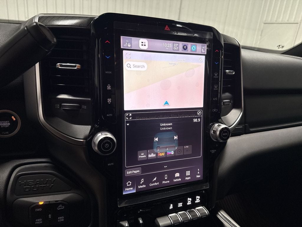 Quick Order Package 2UY Lone Star: Lone Star Badge. Night Edition: Firestone Brand Tires; Gloss Black Nostrils/mic Black Grille; LT285/60R20E OWL On/off Road Tires; Black Exterior Truck Badging; 20" X 8.0" Black Painted Aluminum Wheels; Body Color Grille-Surround; Black Interior Accents; Black Wheel Center Hub; Painted Front Bumper; Painted Rear Bumper. Off Road Package: Front Performance Tuned Shock Absorbers; Transfer Case Skid Plate Shield; Hill Assist; Rear Performance Tuned Shock Absorbers. Big Horn Level 1 Plus Equipment Group: Google Android Auto; SiriusXM Radio Service; For Details. Visit DriveUconnect.com; For More Info. Call 800-643-2112; Integrated Voice Command with Bluetooth®; Emergency Vehicle Alert System (EVAS); Lone Star Instrument Panel Badge; 12" Touchscreen Display; Glove Box Lamp; Auto Power-Folding Mirrors; Footwell Courtesy Lamp; Anti-Spin Differential Rear Axle; Mirror Running Lights; MOPAR Deployable Bed Step; Alexa Built-In; Apple CarPlay; Power-Adjustable Convex Aux Mirrors; Forward and Reverse Utility Lights; Locking Lower Glove Box; Remote Start System; 9 Alpine Speakers with Subwoofer; Disassociated Touchscreen Display; Dual Glove Boxes; 2nd Row in Floor Storage Bins; Rear View Auto Dim Mirror; Rear Dome with On/off Switch Lamp; LED Bed Lighting; Connectivity - US/Canada; GPS Navigation; 4G LTE Wi-Fi Hot Spot; GPS Antenna Input; Exterior Mirrors with Heating Element; SiriusXM with 360L; Global Telematics Box Module; Connected Travel and Traffic Services; Foam Bottle Insert (door Trim Panel); Black Exterior Mirrors; Off-Road Info Pages; Selectable Tire Fill Alert; Trailer Tow Pages; HD Radio; Uconnect 5 Navigation with 12.0" Display Radio; Power Heated Folding Telescopic Mirrors; Exterior Mirrors with Supplemental Signals; Steering Wheel Mounted Audio Controls; Exterior Mirrors Courtesy Lamps; Air Conditioning ATC with Dual Zone Control; MOPAR Spray in Bedliner; Power Adjust Mirrors; Luxury Steering Wheel; Power Telescoping Mirrors. Heated Seats and Wheel Group: Heated Front Seats; Heated Steering Wheel. Painted Flat Wheel-To-wheel Side Steps. 5th Wheel/gooseneck Towing Prep Group. Anti-Spin Differential Rear Axle. Premium Cloth Bucket Seats. Remote Start System. Granite Crystal Met CC. MOPAR Front and Rear Rubber Floor Mats. Clearance Lamps. Power 2-Way Driver Lumbar Adjust. Transfer Case Skid Plate Shield. **Equipment listed is based on original vehicle build and subject to change. Please confirm the accuracy of the included equipment by calling the dealer prior to purchase.**
