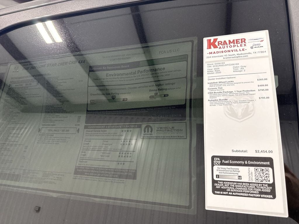 2026 Ram 2500 Lone Star 4WD — V8 6.4L gasoline — Located in Madisonville, TX. This heavy-duty pickup delivers the power and capability you need for tough jobs and confident towing, while offering modern comfort and connectivity. The V8 6.4L engine provides robust performance and dependable haul capacity, and four-wheel drive ensures traction across Texas terrain and beyond. Step inside the Lone Star cabin and enjoy premium features: heated steering wheel for chilly mornings, integrated navigation to guide your next job or weekend escape, XM Radio for endless listening options, and seamless smartphone integration with Android Auto and Apple CarPlay. Thoughtful tech and creature comforts make long drives easier and more productive. This 2026 Ram 2500 is priced to move — the best price available in Madisonville, TX. Whether you're hauling equipment, towing a trailer, or commuting in comfort, this truck pairs capability with convenience at a value that stands out. Recent service and inspection completed; clean history and ready for immediate delivery. Schedule a test drive in Madisonville today and experience the performance and features of this Ram 2500 Lone Star 4WD V8 6.4L. Competitive financing and flexible purchase options are available — call or visit to lock in the best price while it's available.