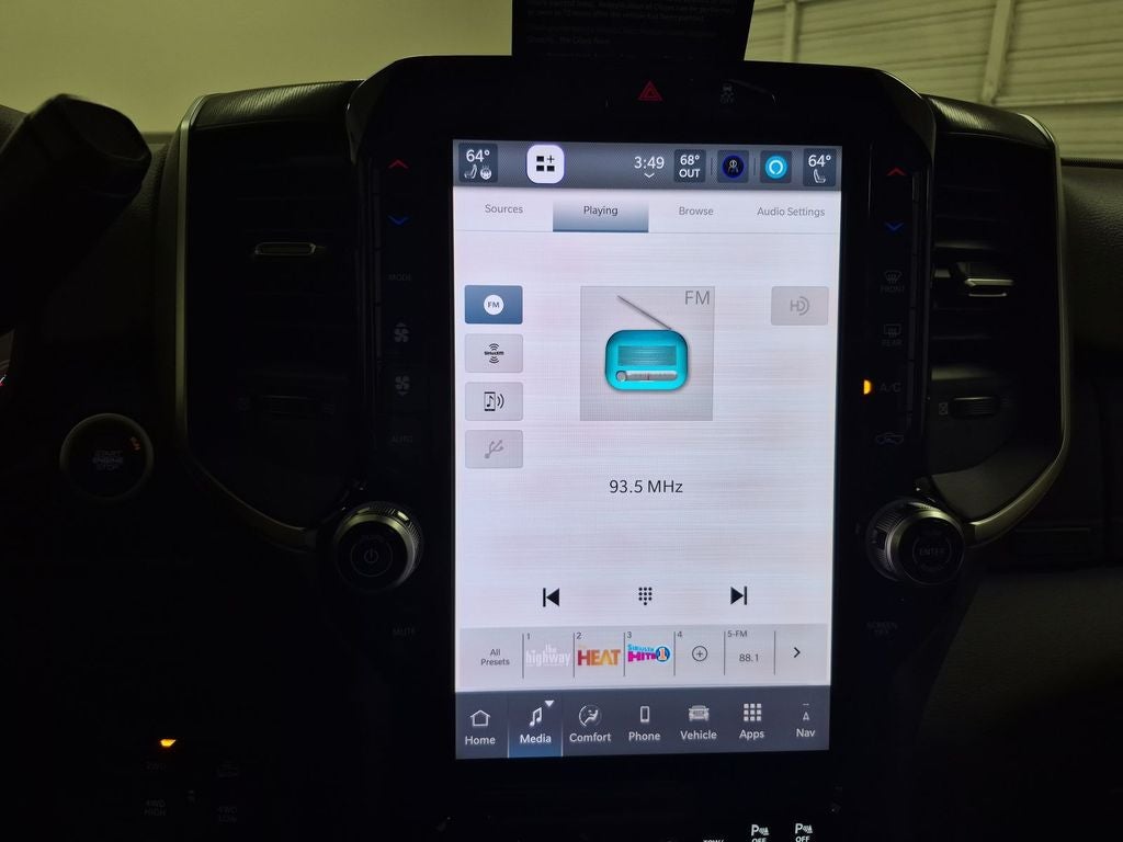 Cold Weather Group: Engine Block Heater; MOPAR Winter Front Grille Cover. Quick Order Package 24Y Lone Star: Lone Star Badge. Night Edition: Firestone Brand Tires; Gloss Black Nostrils/mic Black Grille; LT285/60R20E OWL On/off Road Tires; Black Exterior Truck Badging; 20" X 8.0" Black Painted Aluminum Wheels; Body Color Grille-Surround; Black Interior Accents; Black Wheel Center Hub; Painted Front Bumper; Painted Rear Bumper. Off Road Package: Front Performance Tuned Shock Absorbers; Transfer Case Skid Plate Shield; Hill Assist; Rear Performance Tuned Shock Absorbers. Big Horn Level 1 Plus Equipment Group: Google Android Auto; SiriusXM Radio Service; For Details. Visit DriveUconnect.com; For More Info. Call 800-643-2112; Integrated Voice Command with Bluetooth®; Emergency Vehicle Alert System (EVAS); Lone Star Instrument Panel Badge; 12" Touchscreen Display; Glove Box Lamp; Auto Power-Folding Mirrors; Footwell Courtesy Lamp; Anti-Spin Differential Rear Axle; Mirror Running Lights; MOPAR Deployable Bed Step; Alexa Built-In; Apple CarPlay; Power-Adjustable Convex Aux Mirrors; Forward and Reverse Utility Lights; Locking Lower Glove Box; Remote Start System; 9 Alpine Speakers with Subwoofer; Disassociated Touchscreen Display; Dual Glove Boxes; 2nd Row in Floor Storage Bins; Rear View Auto Dim Mirror; Rear Dome with On/off Switch Lamp; LED Bed Lighting; Connectivity - US/Canada; GPS Navigation; 4G LTE Wi-Fi Hot Spot; GPS Antenna Input; Exterior Mirrors with Heating Element; SiriusXM with 360L; Global Telematics Box Module; Connected Travel and Traffic Services; Foam Bottle Insert (door Trim Panel); Black Exterior Mirrors; Off-Road Info Pages; Selectable Tire Fill Alert; Trailer Tow Pages; HD Radio; Uconnect 5 Navigation with 12.0" Display Radio; Power Heated Folding Telescopic Mirrors; Exterior Mirrors with Supplemental Signals; Steering Wheel Mounted Audio Controls; Exterior Mirrors Courtesy Lamps; Air Conditioning ATC with Dual Zone Control; MOPAR Spray in Bedliner; Power Adjust Mirrors; Luxury Steering Wheel; Power Telescoping Mirrors. Heated Seats and Wheel Group: Heated Front Seats; Heated Steering Wheel. Quick Order Package 2UY Lone Star. 5th Wheel/gooseneck Towing Prep Group. Anti-Spin Differential Rear Axle. Premium Cloth Bucket Seats. Remote Start System. MOPAR Front and Rear Rubber Floor Mats. Rear Wheelhouse Liners. Clearance Lamps. Power 2-Way Driver Lumbar Adjust. Transfer Case Skid Plate Shield. **Equipment listed is based on original vehicle build and subject to change. Please confirm the accuracy of the included equipment by calling the dealer prior to purchase.**