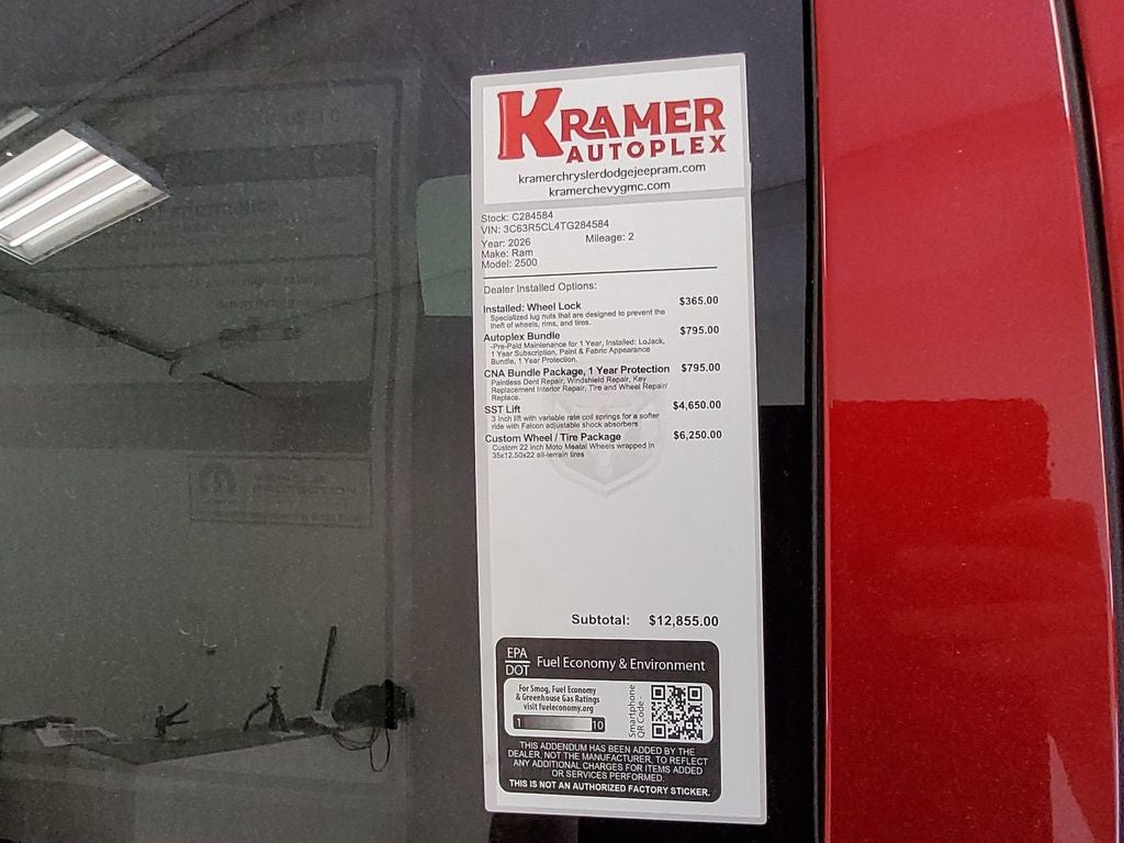 It offers Automatic Climate Control for personalized comfort. See what's behind you with the back up camera on this Ram 2500. This model has auto-adjust speed for safe following. with XM/Sirus Satellite Radio you are no longer restricted by poor quality local radio stations while driving this unit. Anywhere on the planet, you will have hundreds of digital stations to choose from. This 2026 Ram 2500 offers Apple CarPlay for seamless connectivity. You'll never again be lost in a crowded city or a country region with the navigation system on this vehicle. An off-road package is installed on this Ram 2500 so you are ready for your four-wheeling best. The vehicle comes equipped with Android Auto for seamless smartphone integration on the road. The state of the art park assist system will guide you easily into any spot. Bluetooth® technology is built into this 2026 Ram 2500 , keeping your hands on the steering wheel and your focus on the road.