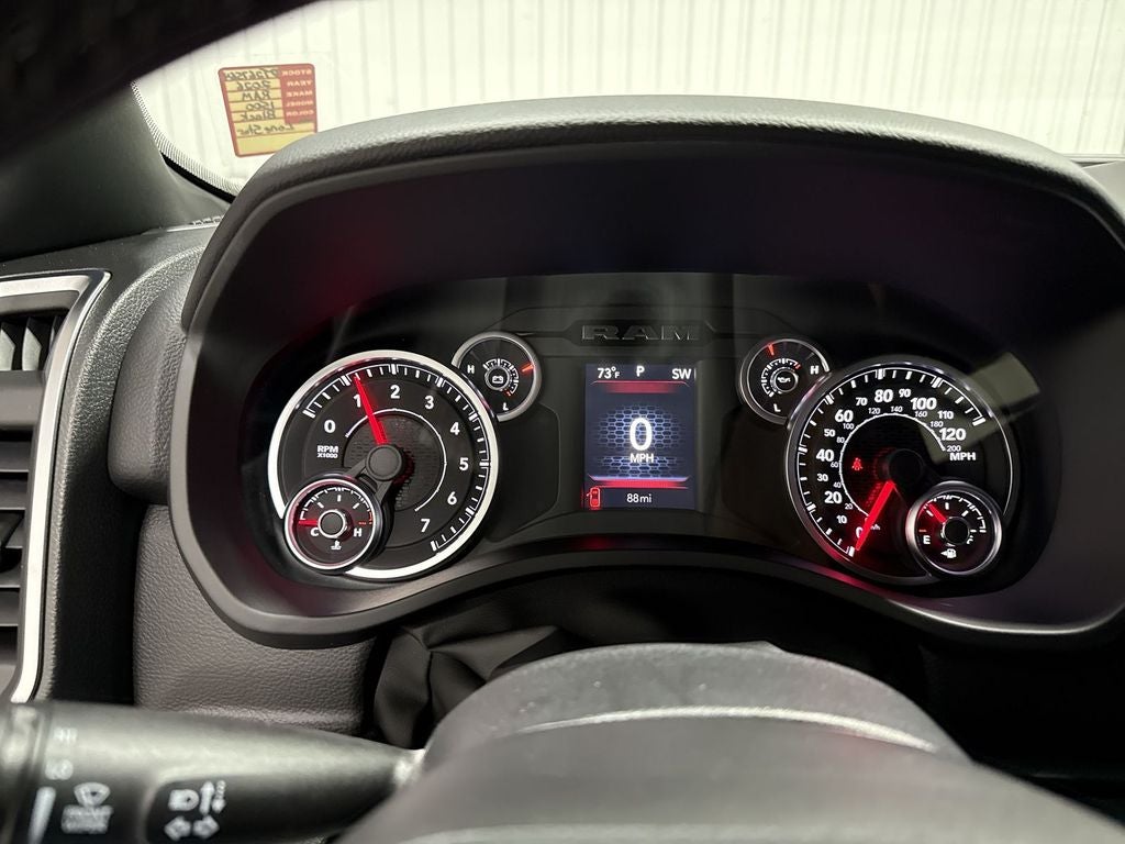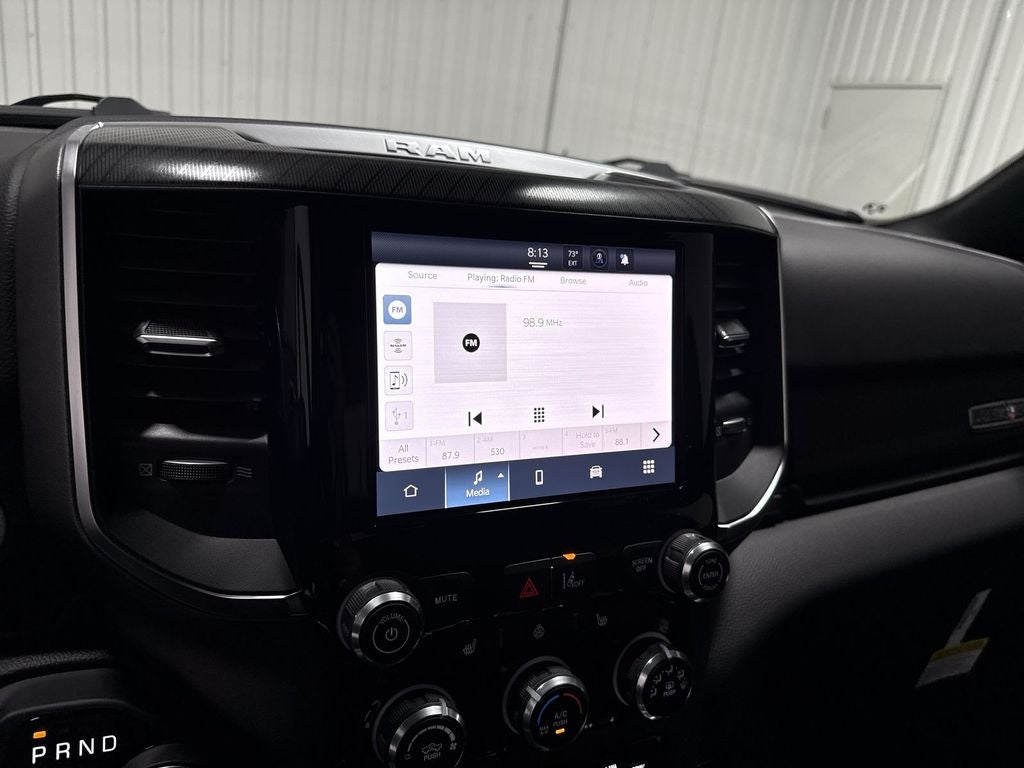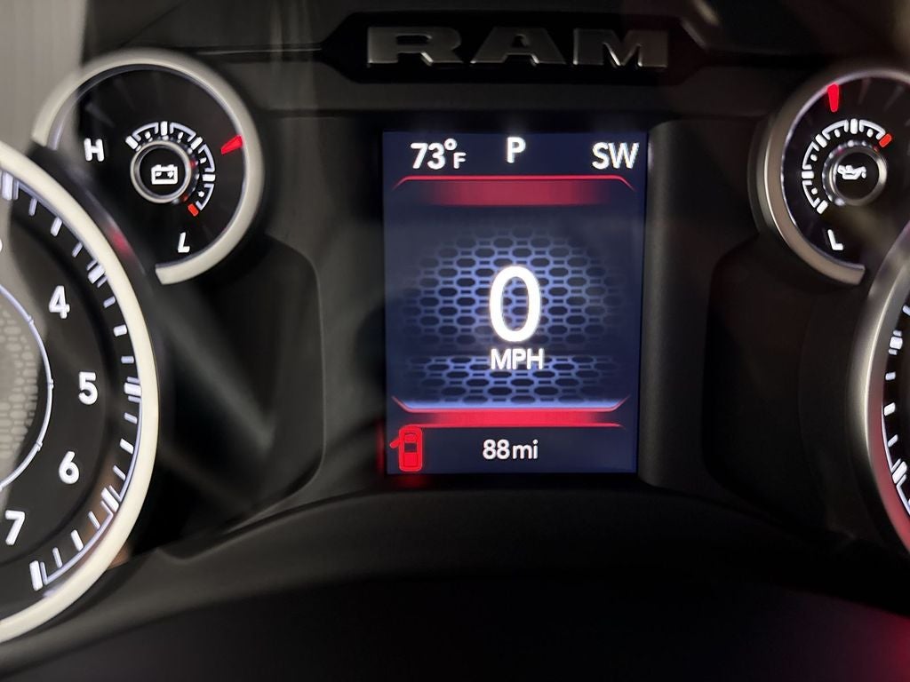 The state of the art park assist system will guide you easily into any spot. See what's behind you with the back up camera on this vehicle. Start this vehicle from inside with remote start. The satellite radio system in this 1/2 ton pickup gives you access to hundreds of nation-wide radio stations with a clear digital signal. This model is equipped with the latest generation of XM/Sirius Radio. The Ram 1500 has automated speed control that adjusts to maintain a safe following distance, enhancing highway driving convenience. This Ram 1500's Forward Collision Warning feature alerts drivers to potential front-end collisions. Apple CarPlay: Seamless smartphone integration for the Ram 1500 - stay connected and entertained on the go! The Ram 1500 features a hands-free Bluetooth® phone system. The vehicle is pure luxury with a heated steering wheel. This 1/2 ton pickup offers Android Auto for seamless smartphone integration. When you encounter slick or muddy roads, you can engage the four wheel drive on this vehicle and drive with confidence.