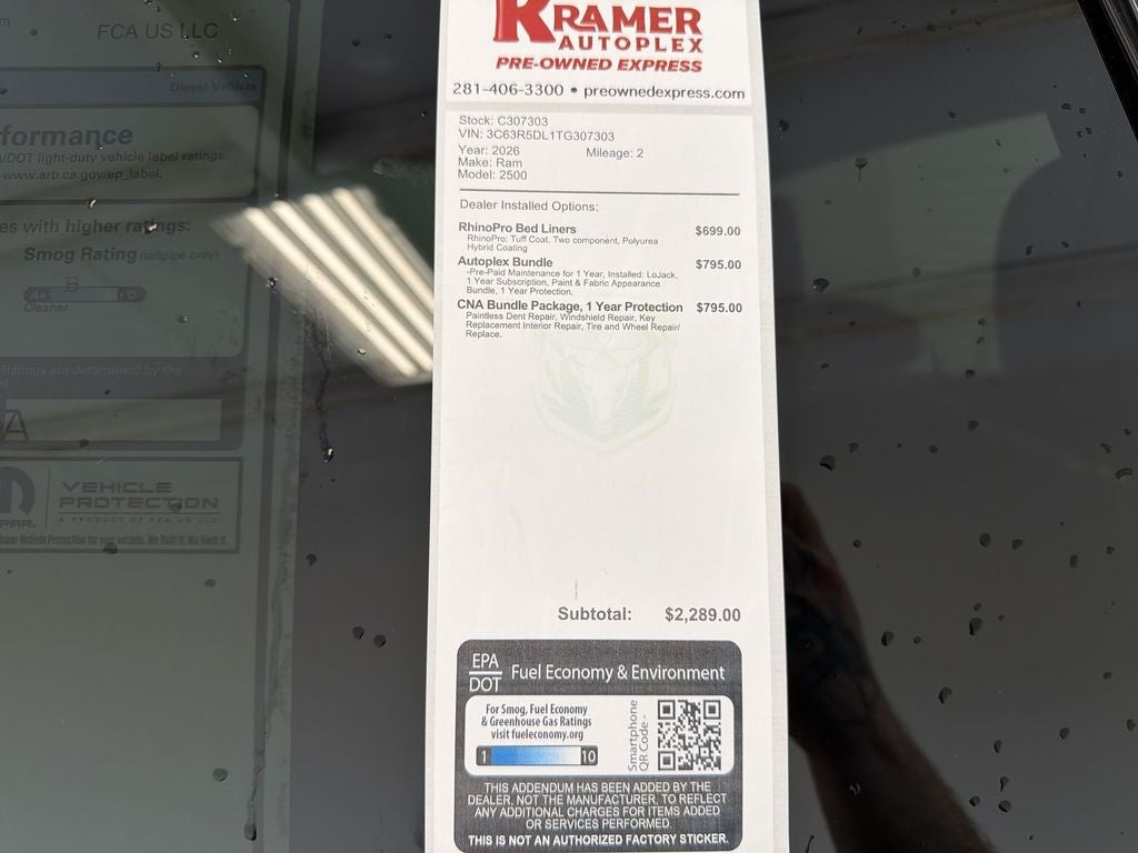 This model offers Apple CarPlay for seamless connectivity. The rear parking assist technology on this vehicle will put you at ease when reversing. The system alerts you as you get closer to an obstruction. Protect this unit from unwanted accidents with a cutting edge backup camera system. Heated seats for those cold winter days are included in this vehicle. The installed navigation system will keep you on the right path. Never get into a cold vehicle again with the remote start feature on this 2026 Ram 2500 . An off-road package is equipped on this unit. This 2026 Ram 2500 has automated speed control that adjusts to maintain a safe following distance, enhancing highway driving convenience. This vehicle features a hands-free Bluetooth® phone system. This unit's Forward Collision Warning feature alerts drivers to potential front-end collisions. with XM/Sirus Satellite Radio you are no longer restricted by poor quality local radio stations while driving this model. Anywhere on the planet, you will have hundreds of digital stations to choose from.