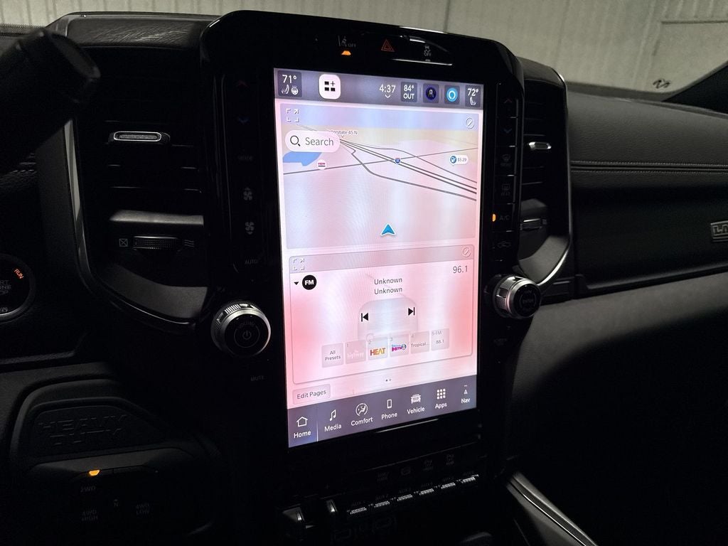 Quick Order Package 24H Laramie. Laramie Level 1 Plus Equipment Group: Center Stop Lamp with Cargo View Camera; Rain Sensitive Windshield Wipers; Power Adjustable Pedals with Memory; LED Bed Lighting; Traffic Sign Recognition; Auto Power-Folding Mirrors; Adaptive Steering System; Exterior Mirrors with Heating Element; Auto Dim Exterior Mirror; Anti-Spin Differential Rear Axle; Drowsy Driver Detection; Mirror Running Lights; MOPAR Deployable Bed Step; Foam Bottle Insert (door Trim Panel); Power-Adjustable Convex Aux Mirrors; Active Lane Management System; Forward and Reverse Utility Lights; Leather Trimmed Bucket Seats; Power Heated Fold Telescopic Mirrors with Memory; Exterior Mirrors with Supplemental Signals; Exterior Mirrors Courtesy Lamps; MOPAR Spray in Bedliner; Remote Tailgate Release; Auto High Beam Headlamp Control; Chrome Exterior Mirrors; Exterior Mirrors with Memory; Power Adjust Mirrors; 2nd Row in Floor Storage Bins; Power Telescoping Mirrors; Auto Dim Exterior Passenger Mirror; Auto Adjust in Reverse Exterior Mirrors. Chrome Bumper Package: Bright Rear Bumper; Bright Front Bumper. 5th Wheel/gooseneck Towing Prep Group. Leather Trimmed Bucket Seats. Center Stop Lamp with Cargo View Camera. LT275/70R18E OWL On/off Road Tires. Granite Crystal Met CC. Instrument Panel Mounted Auxiliary Switches. Clearance Lamps. **Equipment listed is based on original vehicle build and subject to change. Please confirm the accuracy of the included equipment by calling the dealer prior to purchase.**