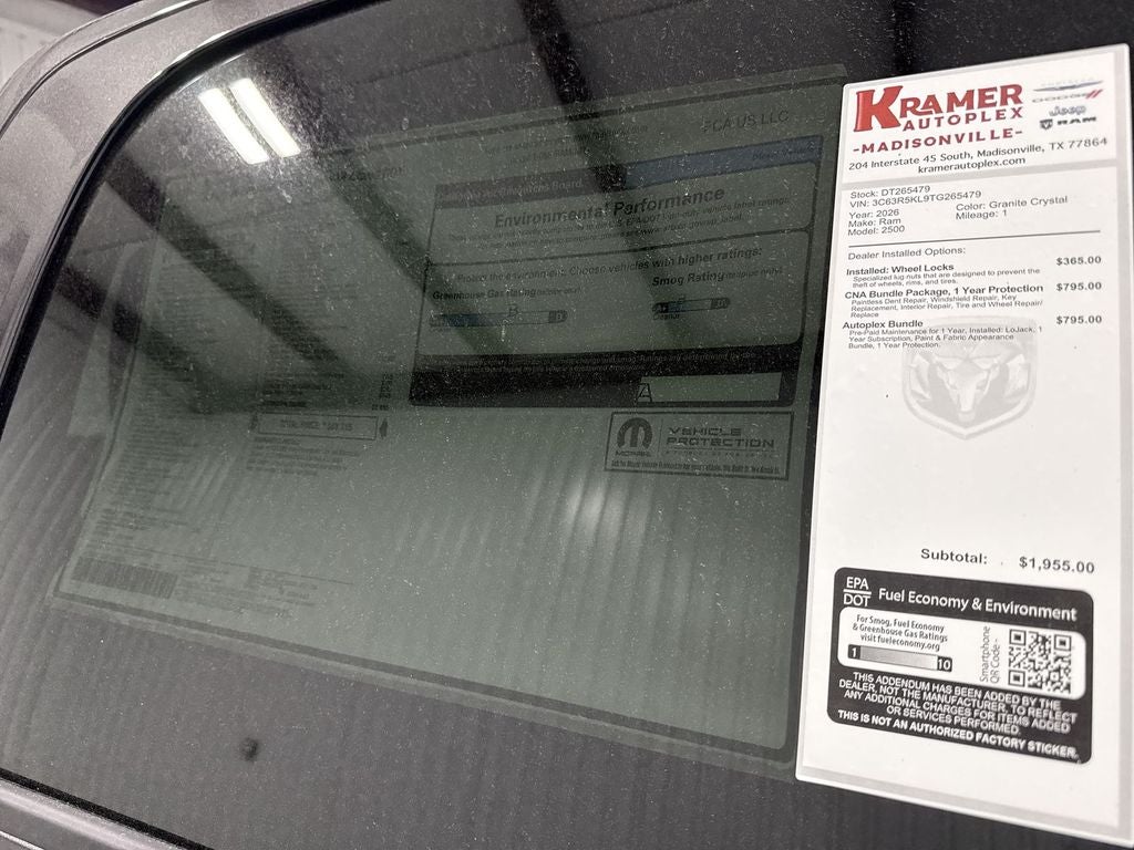 Bluetooth® technology is built into it, keeping your hands on the steering wheel and your focus on the road. This vehicle is pure luxury with a heated steering wheel. This model has auto-adjust speed for safe following. Never get into a cold vehicle again with the remote start feature on this 2026 Ram 2500 . The leather seats in this vehicle are a must for buyers looking for comfort, durability, and style. Apple CarPlay: Seamless smartphone integration for this model - stay connected and entertained on the go! See what's behind you with the back up camera on the vehicle. This model offers Android Auto for seamless smartphone integration. The installed navigation system will keep you on the right path. The Ram 2500's Forward Collision Warning system alerts the driver to potential front-end collisions, enhancing safety. The vehicle projects refinement with a racy metallic gray exterior. The gas and brake pedals adjust allowing you to fine-tune them for personal fit and comfort.
