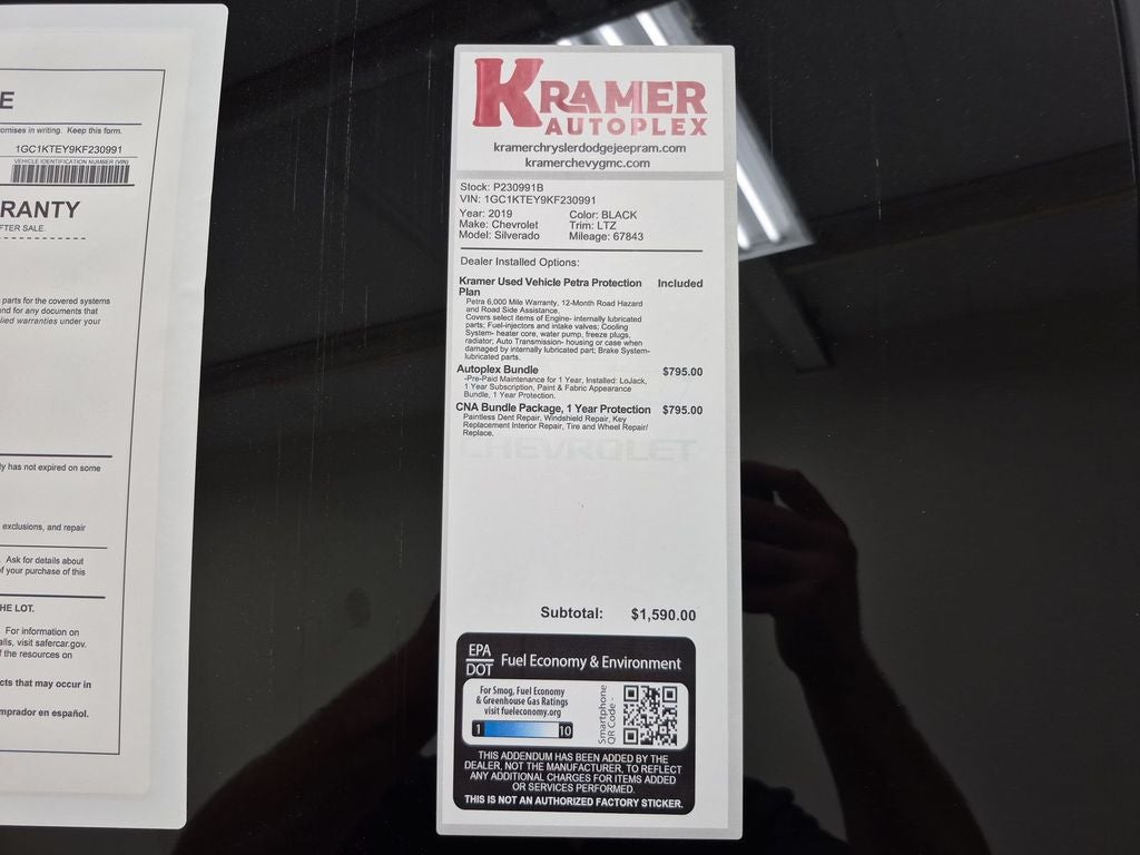 Driver Alert Package. Duramax Plus Package. LTZ Plus Package: Heated Leather Wrapped Steering Wheel; BOSE Sound with 6 Speaker System; Power-Adjustable Pedals. Preferred Equipment Group 1LZ: Chrome Door Handles; Rear 60/40 Folding Bench Seat (folds Up); Remote Vehicle Starter System; Power Sliding Rear Window with Defogger; Electric Rear-Window Defogger; Unauthorized Entry Theft-Deterrent System; 4.2" Diagonal Color Display Driver Info Center; Trailering Equipment; 6-Speaker Audio System; 110-Volt AC Power Outlet; Front Halogen Fog Lamps; Remote Locking Tailgate; Chevrolet Connected Access; Universal Home Remote; Color-Keyed Carpeting Floor Covering; OnStar and Chevrolet Connected Services Capable; Remote Keyless Entry; LT265/70R18E AS BW Tires; Electronic Shift Transfer Case; Single Slot CD/MP3 Player; Deep-Tinted Glass; Dual-Zone Automatic Climate Control; Heated Power-Adjustable Outside Mirrors; Chrome Mirror Caps; 18" Chromed Aluminum Wheels; HD Radio; Integrated Trailer Brake Controller; SiriusXM Rad
