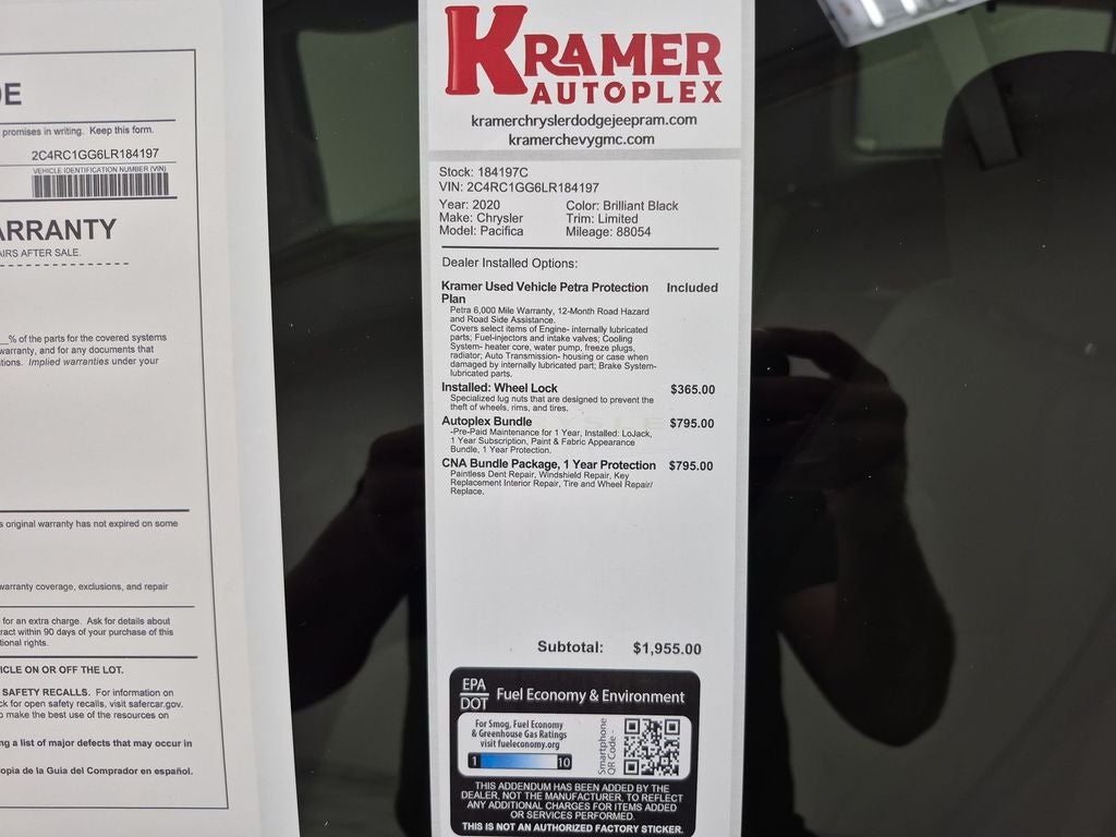 See what's behind you with the back up camera on the Chrysler Pacifica. The leather seats in it are a must for buyers looking for comfort, durability, and style. Start the Chrysler Pacifica from inside with remote start. You'll never again be lost in a crowded city or a country region with the navigation system on it. The Chrysler Pacifica is equipped with the latest generation of XM/Sirius Radio. Bluetooth® technology is built into this mini van, keeping your hands on the steering wheel and your focus on the road. This unit is pure luxury with a heated steering wheel. It comes equipped with Android Auto for seamless smartphone integration on the road. This unit offers Apple CarPlay for seamless connectivity. This model is painted with a sleek and sophisticated black color. Enjoy the convenience of the power liftgate on this 2020 Chrysler Pacifica . Set the temperature exactly where you are most comfortable in the vehicle. The fan speed and temperature will automatically adjust to maintain your preferred zone climate.
