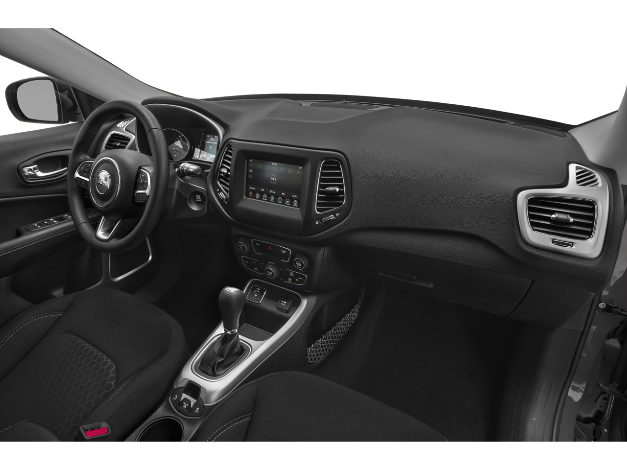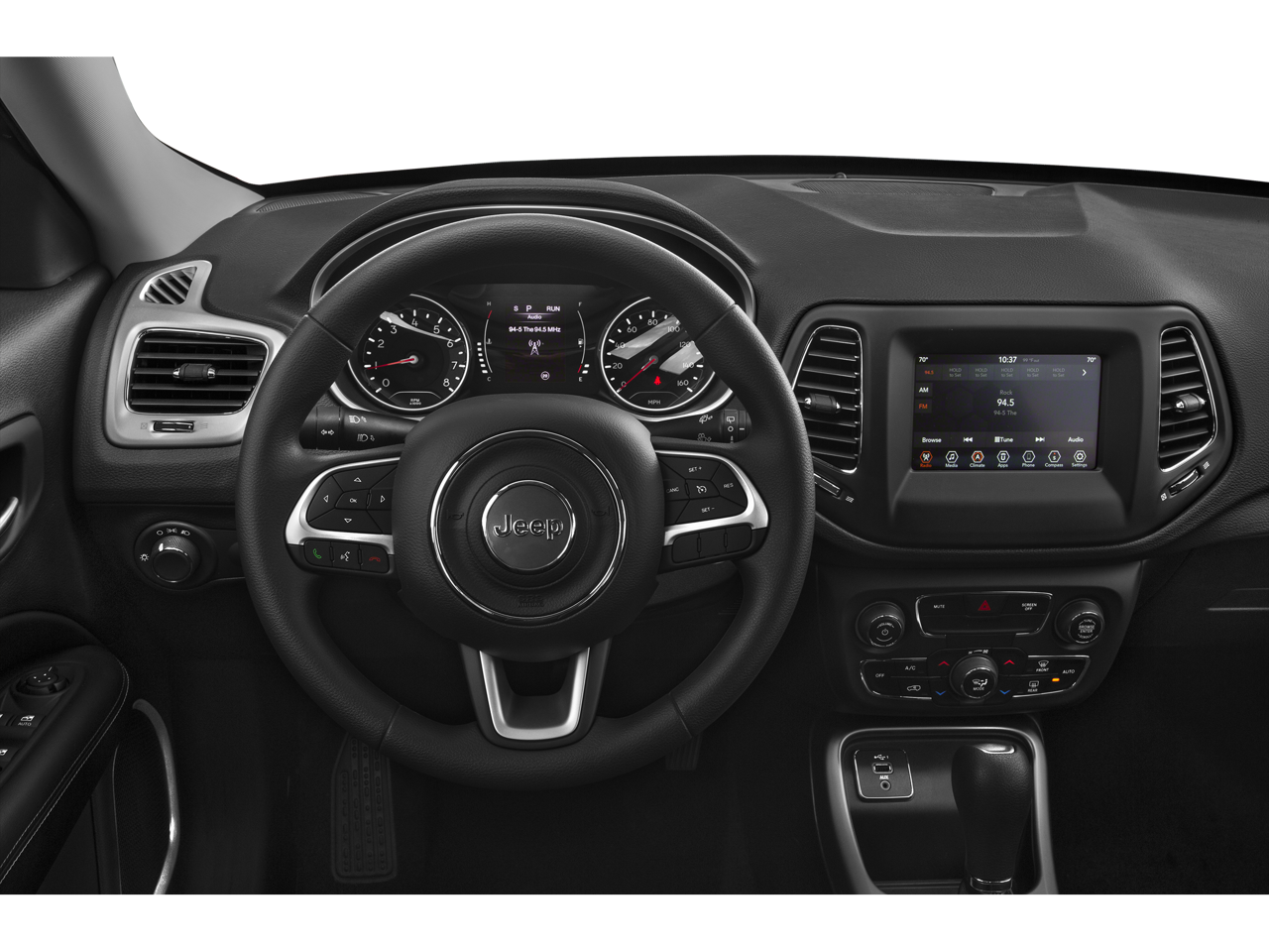 Quick Order Package 28B Altitude: Black Day Light Opening Moldings; Gloss Black Lower Rear Fascia Valance; Piano Black Interior Accents; Gloss Black Fog Lamp Bezels; Black Grille with Black Rings; Gloss Black Compass Badge; Bright Exhaust Tip; Gloss Black Jeep Badge; 18" X 7.0" Black Aluminum Wheels. Safety and Security Group: Blind Spot and Cross Path Detection; Rain Sensitive/intermittent Wipers; ParkSense Rear Park Assist System; Security Alarm. Popular Equipment Group: 4-Way Power Lumbar Adjust; Cluster 7.0" Color Driver Info Display; Remote Start System; 115V Auxiliary Power Outlet; Rear View Auto Dim Mirror; Power 8-Way Driver/manual 6-Way Passenger Seats. MOPAR Interior Protection Package: MOPAR Molded Cargo Tray; Delete Floor Mats; MOPAR All-Weather Floor Mats. Power 8-Way Driver/manual 6-Way Passenger Seats. Diamond Black Crystal PC. **Equipment listed is based on original vehicle build and subject to change. Please confirm the accuracy of the included equipment by calling the dealer prior to purchase.**