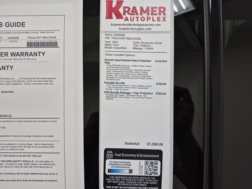 Equipment Group 600A Standard Package: 22" 6-Spoke Painted Machined-Face Aluminum Wheels; Heated/ventilated Leather Front Captain's Chairs; 3.5L EcoBoost V6 Engine; P285/45R22 AS BSW Tires; 7. 450 lbs GVWR; B&O Sound System by Bang and Olufsen. ControlTrac with 3.73 Axle Ratio. Heavy-Duty Trailer Tow Package. 2nd Row Leather-Trimmed Captain's Chairs with Armrest. Burgundy Velvet Met TC. **Equipment listed is based on original vehicle build and subject to change. Please confirm the accuracy of the included equipment by calling the dealer prior to purchase.**