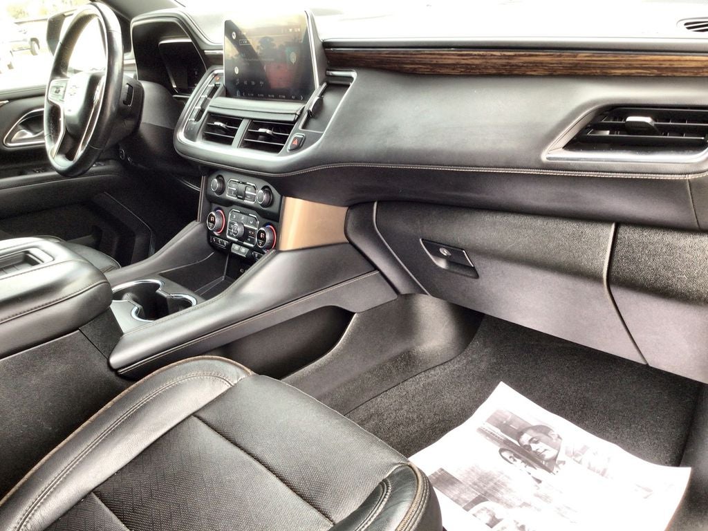 Max Trailering Package: Extra Capacity Cooling System. Advanced Trailering Package: Trailer Side Blind Zone Alert; Smart Trailer Integration Indicator; Integrated Trailer Brake Controller; Hitch Guidance with Hitch View. High Country Deluxe: Dual-Pane Power Panoramic Sunroof; Air Ride Adaptive Suspension; Power-Retractable Assist Steps; Adaptive Cruise Control. Preferred Equipment Group 3LZ: Bright Front and Rear Door Sill Plates; Memory Settings; Stop/start System Disable Button; Perforated Leather Seating Surfaces; Remote Start; 3rd Row 60/40 Power-Folding Split-Bench; Safety Alert Seat; Chrome Door Handles with Body-Color Strip; Hill Descent Control; Front and Rear Park Assist; 6.2L EcoTec3 V8 Engine; Rear Camera Mirror Washer; Inside Rearview Auo-Dimming Rear Camera Mirror; Heated Steering Wheel; LED Daytime Running Lamps; Rear Cross Traffic Alert; Wheels: 22" X 9" Sterling Silver Premium Painted; Driver and Front Outboard Passenger Airbags; Heated Driver and Front Passenger Seats; Wireless Charging; Front Bucket Seats; Universal Home Remote; Color-Keyed Carpeting Floor Covering; Heated 2nd Row Outboard Seats; Hands-Free Rear Power Programmable Liftgate; Chevrolet Infotainment 3 Premium System Radio; 2-Speed Active Electronic Autotrac Transfer Case; 1st and 2nd Row Color-Keyed Carpeted Floor Mats; Enhanced Driver Information Center; Floor Console; Lane Change Alert with Side Blind Zone Alert; Dual Exhaust System; SiriusXM Radio with 360L; HD Surround Vision; Heated and Ventilated Driver and Front Passenger Seats; Power Tilt and Telescopic Steering Column; Leather-Wrapped Steering Wheel; 15" Diagonal Multi-Color Head-Up Display; Rear Pedestrian Alert; Bose 10-Speaker Surround with CenterPoint; Magnetic Ride Control Suspension; Infotainment Display; Automatic Stop/start; Power Release 2nd Row Bucket Seats; 275/50R22SL AS BW Tires; Outside Heated Power-Adjustable Mirrors. Power-Retractable Assist Steps. Dual-Pane Power Panoramic Sunroof. Air Ride Adaptive Suspension. Adaptive Cruise Control. **Equipment listed is based on original vehicle build and subject to change. Please confirm the accuracy of the included equipment by calling the dealer prior to purchase.**