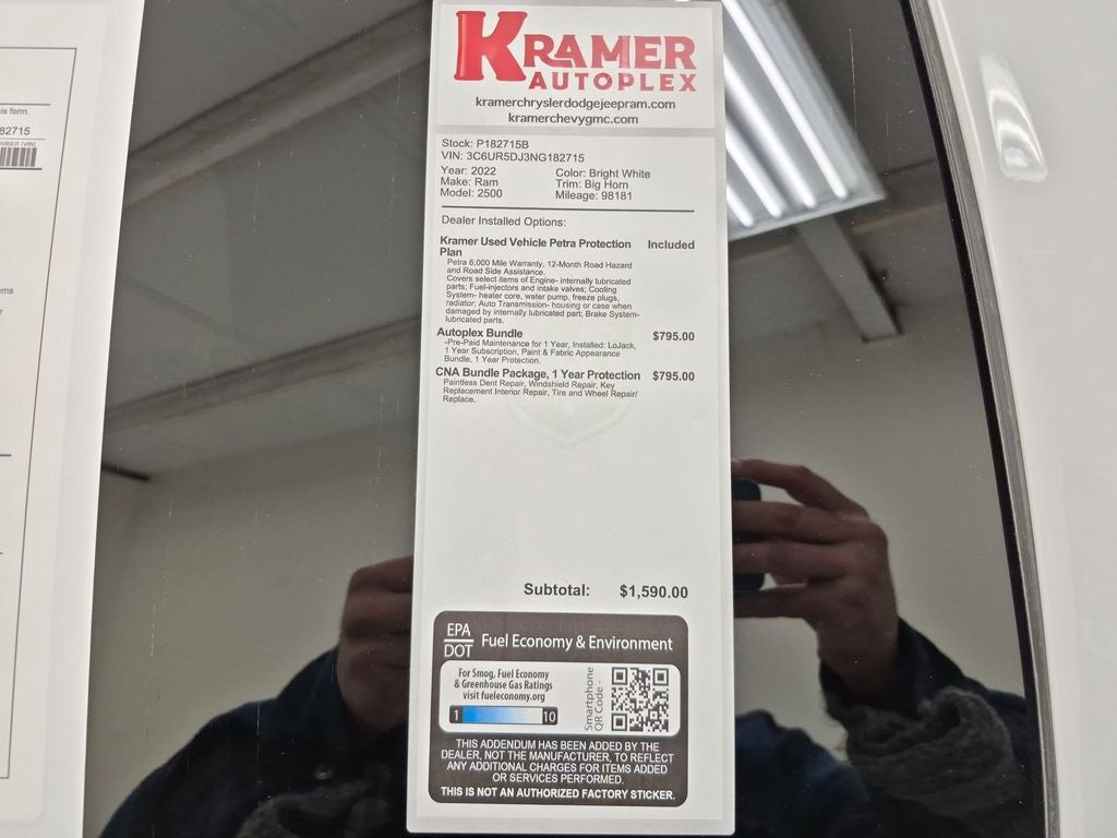Ready to conquer worksite demands or weekend adventures, this 2022 Ram 2500 Big Horn 4WD with the mighty V8 6.4L gasoline engine combines rugged capability with modern comfort — located in Livingston, TX and priced to move. With heavy-duty performance, this Ram delivers confident towing and hauling thanks to its robust powertrain and durable chassis, making it ideal for contractors, ranchers, and outdoor enthusiasts who need serious capability. Step inside to a comfortable, well-appointed cabin featuring convenient tech like Hands Free Bluetooth® for safe calling, Apple CarPlay and Android Auto to integrate your smartphone seamlessly, and a Back-Up Camera to make parking and hitching trailers easier. The Big Horn trim adds practical touches and durability-focused features that stand up to daily demands while keeping driver and passengers comfortable. This 2022 Ram 2500 is offered at the best price in the area — exceptional value for a truck with its performance, features, and condition. Located in Livingston, TX, it's ready for immediate test drives and inspection. Whether you need a dependable work truck or a powerful weekend companion, this Ram 2500 blends rugged capability with modern connectivity and safety features. Act quickly — a well-maintained 2022 Ram 2500 Big Horn 4WD with a 6.4L V8 at the best price won't last long in Livingston, TX. Schedule your test drive today and take command of the road.