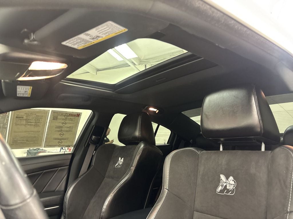 Plus Group: Power Tilt/telescope Steering Column; Blind Spot Memory/power/heat Mirror; Blind Spot and Cross Path Detection; Scat Pack Logo Nappa/Alcantara Seat; Black-Edged Premium Floormats; Exterior Mirrors Courtesy Lamps; Premium-Stitched Dash Panel; Locking Lug Nuts; Exterior Mirrors with Heating Element; Auto Dim Exterior Driver Mirror; Driver and Passenger Lower LED Lamps; Auto Adjust in Reverse Exterior Mirrors; Front Overhead LED Lighting. Quick Order Package 21V Scat Pack Widebody: Flat-Bottom Steering Wheel; Performance Shift Indicator; Widebody Package; All Speed Traction Control; Brembo 6-Pot Fixed Front Caliper Brakes; Adaptive Damping Suspension; 20" X 11" Carbon Black Aluminum Wheels; Pirelli Brand Tires; Widebody Competition Suspension; Body Color Fender Flares; 305/35ZR20 (107Y) AS Performance Tires. Harman/kardon Audio Group: 19 Harman/kardon GreenEdge Speakers; Harman/kardon GreenEdge Amp; Surround Sound. Power Sunroof. **Equipment listed is based on original vehicle build and subject to change. Please con