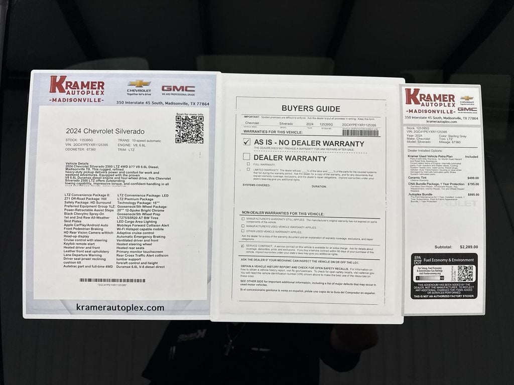2024 Chevrolet Silverado 2500 LTZ 4WD — V8 6.6L Diesel, Madisonville TX. This rugged, refined heavy-duty pickup delivers power and comfort for work and weekend adventures. Equipped with the proven V8 6.6L Duramax diesel engine and four-wheel drive, this Chevrolet Silverado 2500 LTZ offers outstanding towing capability, impressive torque, and confident handling in all road conditions. Inside, enjoy premium features like Apple CarPlay, hands-free Bluetooth®, and BOSE stereo for seamless connectivity and superior sound. Steering wheel audio controls and adaptive cruise control enhance convenience and safety on long drives. The LTZ trim adds upscale appointments and durable materials designed to stand up to daily use while keeping occupants comfortable. Located in Madisonville TX, this Chevrolet Silverado 2500 LTZ is competitively priced and advertised as the best price in the area — exceptional value for a diesel-powered heavy-duty truck with these options. Whether you need a dependable work truck or a comfortable long-haul vehicle, this Chevrolet Silverado checks all the boxes. Schedule a test drive today to experience the V8 diesel performance, 4WD capability, and advanced tech features firsthand. Don't miss your chance to own a 2024 Chevrolet Silverado 2500 LTZ with top-tier equipment at the best price in Madisonville TX.