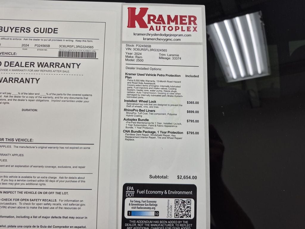 2024 Ram 2500 Laramie 4WD — 6.7L Cummins Diesel, 33,374 miles This rugged 2024 Ram 2500 Laramie combines heavy-duty capability with refined comfort, now available in Livingston, TX. Powered by a robust 6-cylinder 6.7L Cummins diesel and a proven 4WD system, this truck delivers exceptional towing and torque for demanding work or weekend adventures. With only 33,374 miles, it's been maintained to provide reliable performance mile after mile. Premium interior amenities include leather seats, a heated steering wheel, and an advanced infotainment suite featuring Apple CarPlay and integrated navigation for effortless connectivity and route guidance. The spacious Laramie cabin offers sophisticated finishes and practical storage, making long drives more comfortable for drivers and passengers alike. Safety and transparency matter — this Ram 2500 comes with a CARFAX Clean Report for added peace of mind. Whether you need a powerful workhorse for towing heavy loads or a comfortable long-distance hauler, this diesel-powered Ram balances capability and comfort. Located in Livingston, TX, this truck is competitively priced — offering the best price for its condition, features, and mileage. Don't miss the opportunity to own a high-performing 2024 Ram 2500 Laramie with the reliability of a Cummins diesel and premium creature comforts. Contact us to schedule a test drive or request the CARFAX report today.