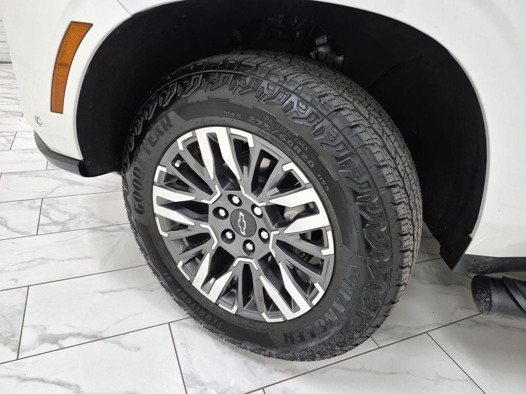 Max Trailering Package: Extra Capacity Cooling System; Integrated Trailer Brake Controller. Advanced Trailering Package: Blind Zone Steering Assist with Trailering; Smart Trailer Integration Indicator; Hitch View with Pan/zoom Image Adjustment. Comfort Package: Heated 2nd Row Outboard Seats; 2nd Row Power Release 60/40 Split-Folding Bench Seat; Memory Settings; LED Headlamps with LED Daytime Running Lamps; Heated Steering Wheel; Bose 10-Speaker Surround with CenterPoint; 3rd Row 60/40 Power-Folding Split-Bench; LED Tail Lamps; Heated Power-Adjustable Outside Mirrors. Preferred Equipment Group 2Z7: Bright Front and Rear Door Sill Plates; Front Skid Plate; Front High-Approach Angle Fascia; 2-Speed Active Electronic Autotrac Transfer Case; Rear Power Liftgate; Hill Descent Control; 20" X 9" Bright Machined Aluminum Wheels; Dual Exhaust System; Red Recovery Hooks; Black Tubular Assist Steps; Heavy-Duty Air Filter; Front LED Fog Lamps; Wireless Phone Charging; 275/60R20SL AT BW Tires; 8-Way Power Front Passenger Seat Adjuster; Auto-Dimming Inside Rearview Mirror; Memory Settings For Driver; Heated Driver and Front Passenger Seats; Z71 Exterior Features; Universal Home Remote. Dual-Pane Power Panoramic Sunroof. Iridescent Pearl Tricoat. Power Release 2nd Row Bucket Seats. **Equipment listed is based on original vehicle build and subject to change. Please confirm the accuracy of the included equipment by calling the dealer prior to purchase.**