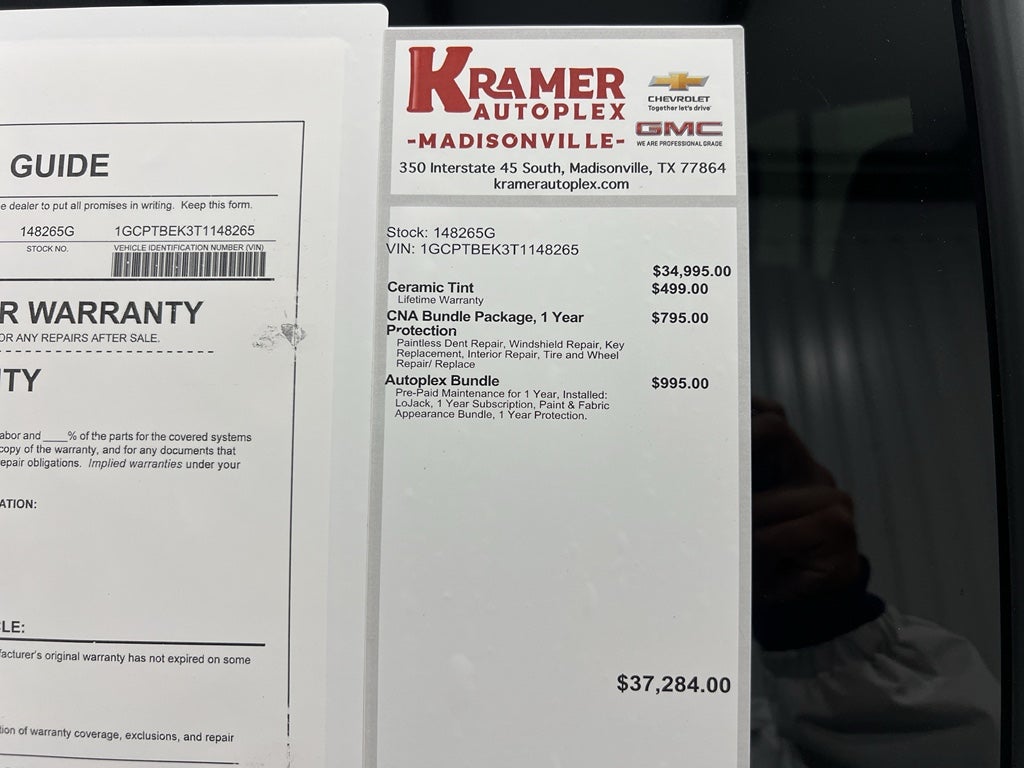 WT Convenience Package II: EZ-Lift and Lower Tailgate; 4-Spoke Wrapped Steering Wheel; Tailgate Keyed Cylinder Lock; StowFlex Tailgate Storage Compartment; 8-Way Power Driver Seat Adjuster; Power Driver Lumbar Control Seat Adjuster. WT Custom Package: Black Nameplates; 265/60R18 All-Season Blackwall Tires; 18" X 8.5" Black High Gloss Aluminum Wheels. Preferred Equipment Group 4WT: Chevy Safety Assist. Black Nameplates. **Equipment listed is based on original vehicle build and subject to change. Please confirm the accuracy of the included equipment by calling the dealer prior to purchase.**